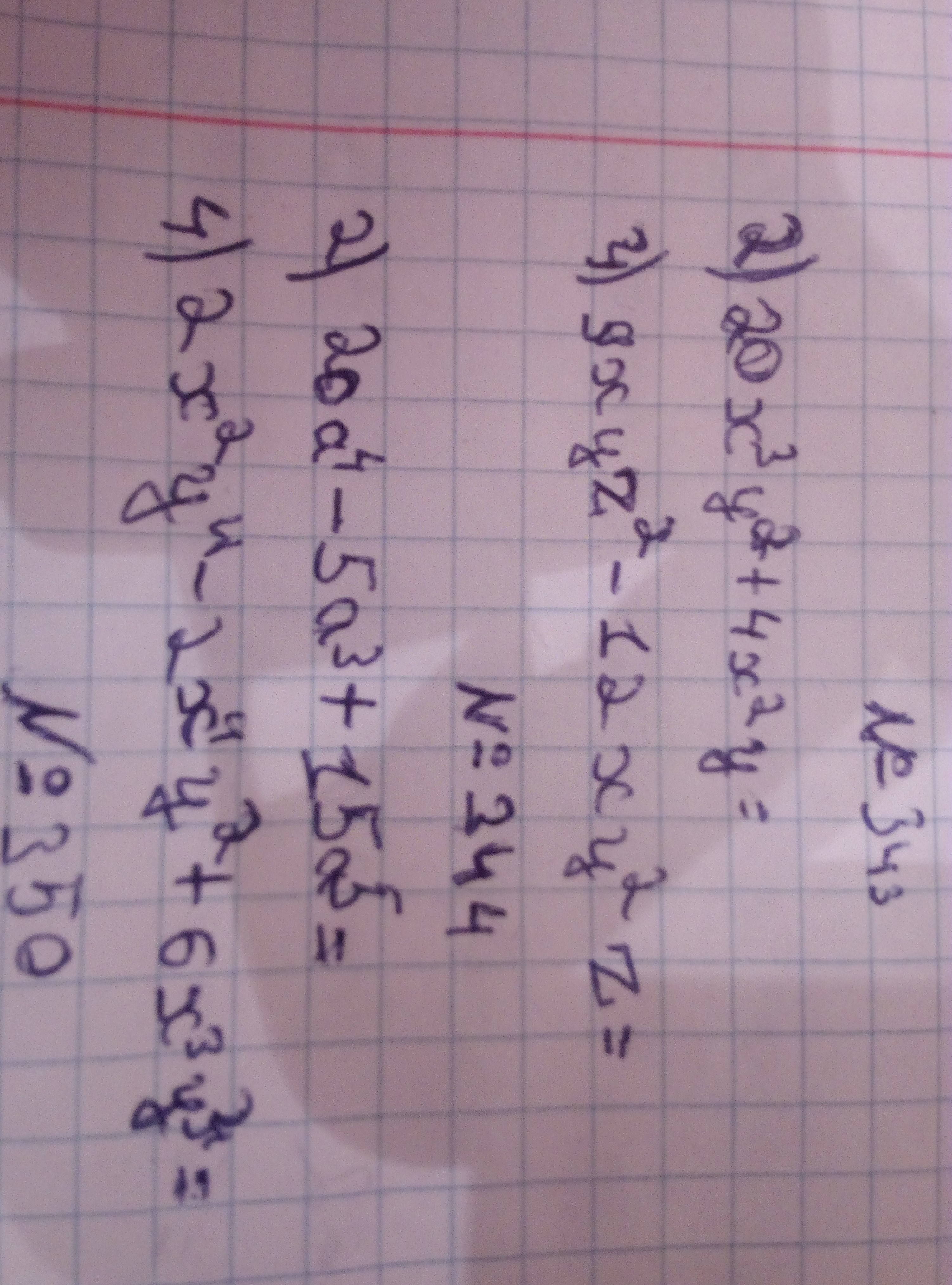 20a⁴ - 5a³ + 15a⁵ = 5a³(4a - 1 + 3a²)