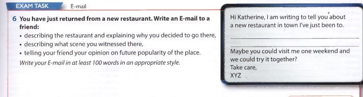 I am writing you to tell you about a new restaurant in town I`ve just been to is very comfortable and elegant. The waiters served us really good.In first seen the restaurant seem ordinary but It`s just marvellous. The food is fantastic and the food is over thsn 50 nationalities.I decided to go there because of advertisements thats why I decided to go there.