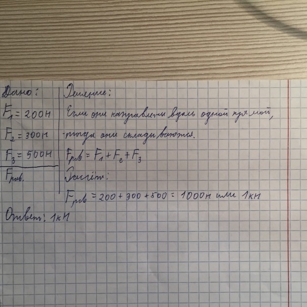 На тело действует три силы 200н, 300н, 500н, направленные вдоль одной прямой.Найдите все равнодействующие силы .