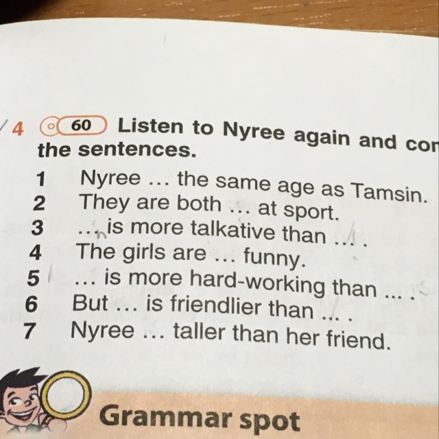 А тут разве слушать не надо? В певом точно is, вот втором возможно good, в третьем нужно вписать имя, в четвертом are, в пятом и шестом имена, в седьмом is