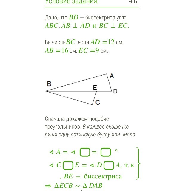 В прямоугольных треугольниках ECB и DAB по условию BD - биссектриса,