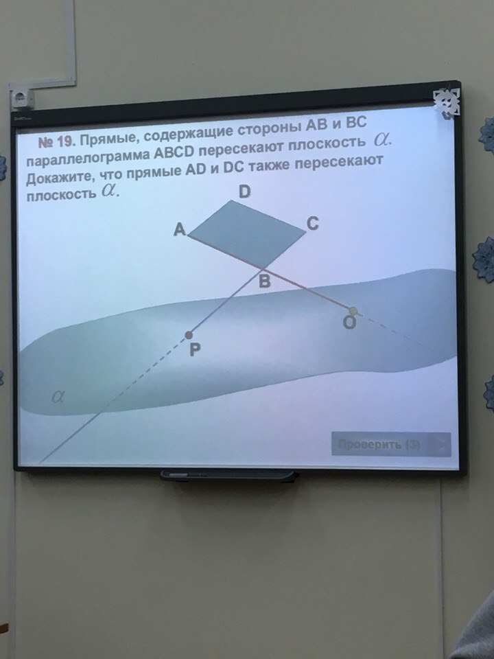 Поскольку AB паралельно DC и BC паралельно AD, значит прямые содержащие стороны DC и AD тоже паралельни прямым содержащие стороны AB и BC. Cледовательно, прямые AD и DC тоже пересекают плоскость aльфа