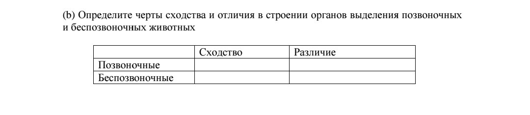определите черты сходства и отличия в строение органов выделения позвоночных и безспозврночных животных