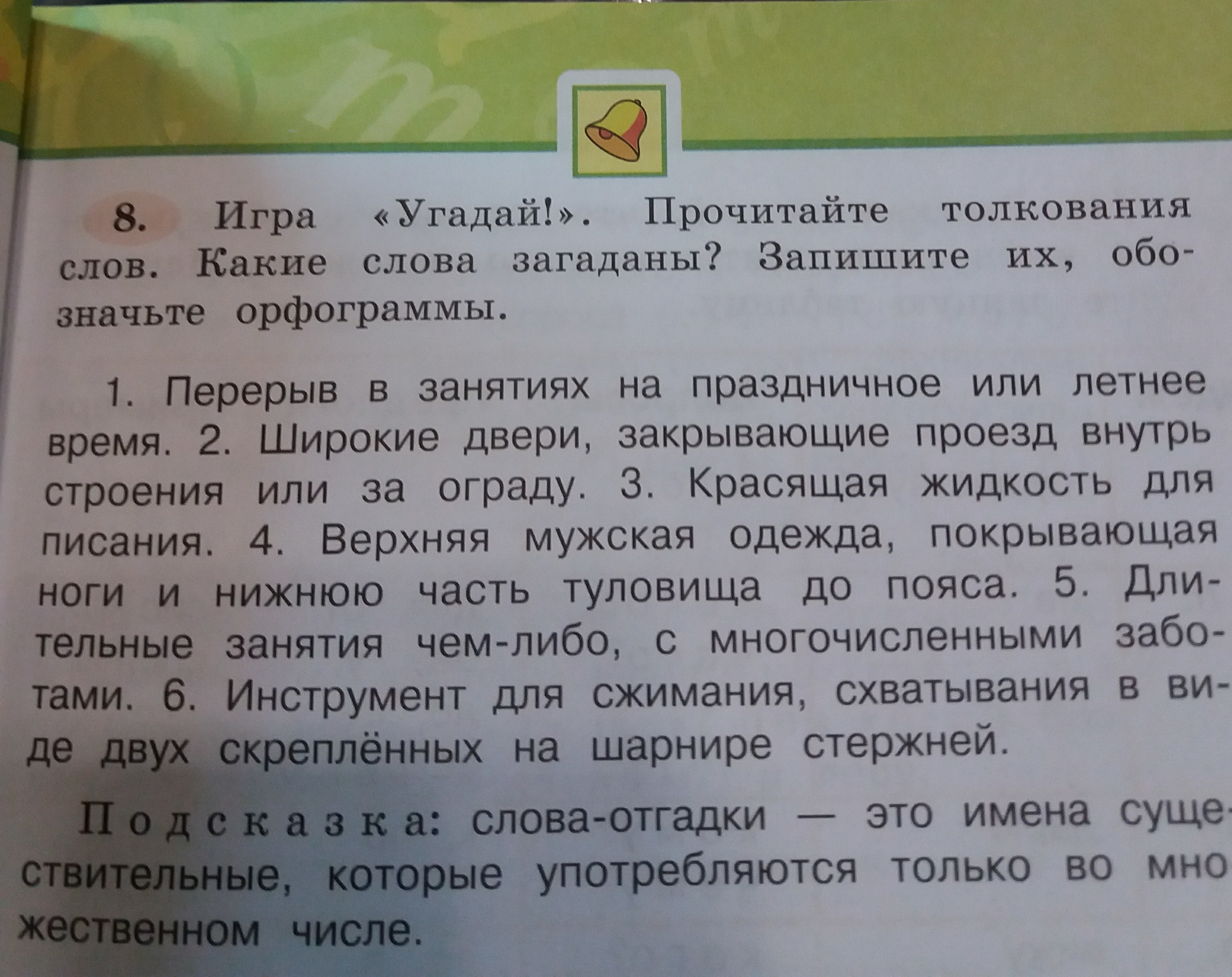 кАникулы, вОрота, чЕрнила, брЮки, хоББи, щИпцы.