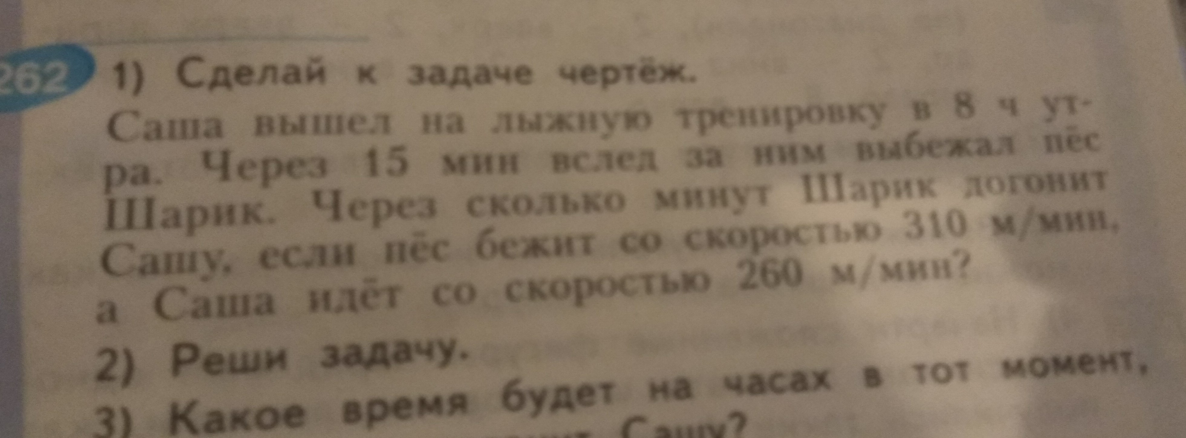 1) 15 * 260 = 3900 (м) пройдет Саша за 15 минут.