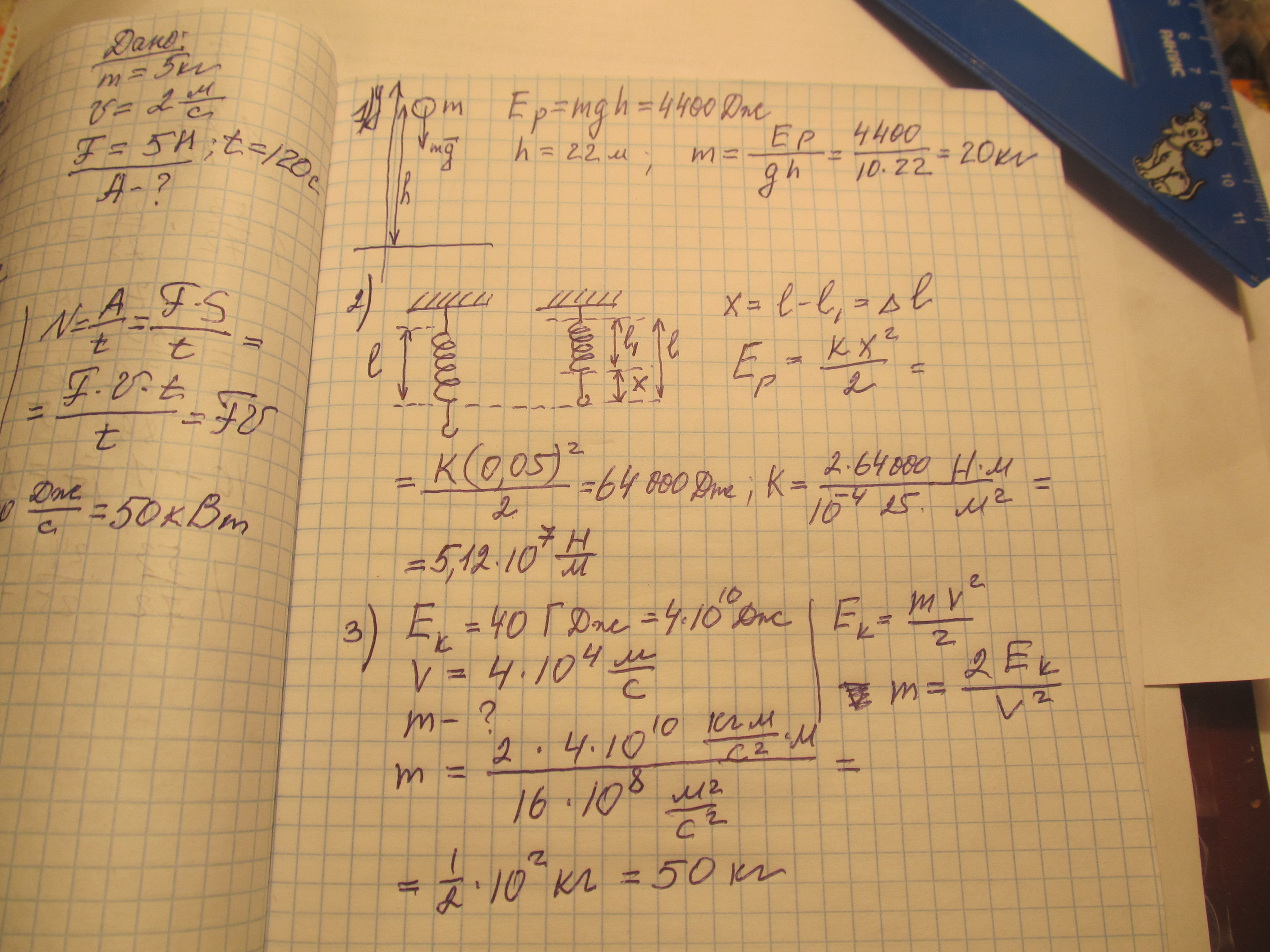 2) Потенциальная энергия пружины , сжатой на 5 см , равна 64 кДж . Определите коэффициент жесткости этой пружины .