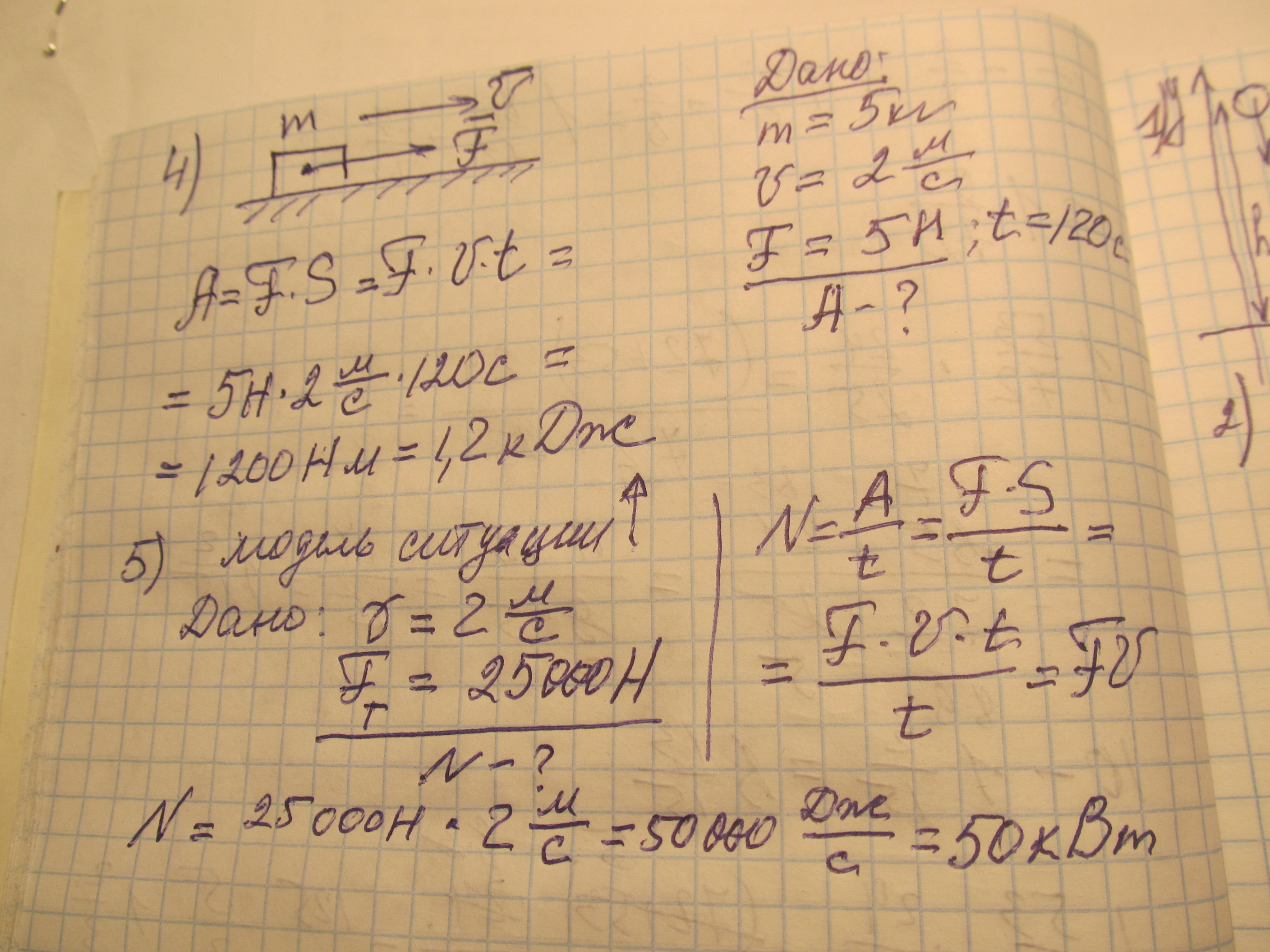4) Ящик массой 5 кг движется по горизонтальной поверхности со скоростью 2 м/с под действием горизонтальной силы 5 Н . Какую работу выполняет эта сила за 2 мин?