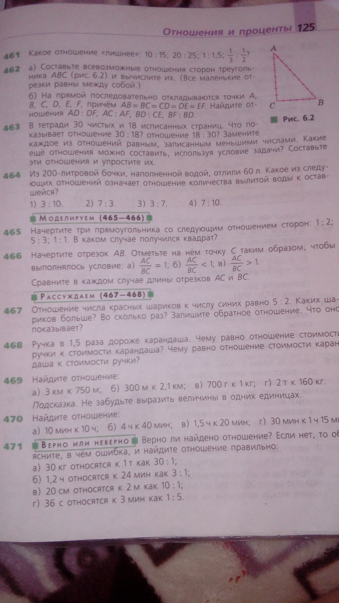 видно, что 3 отношения имеют одно и то же значение 2/3 , а одно 4/5, значит, оно лишнее.