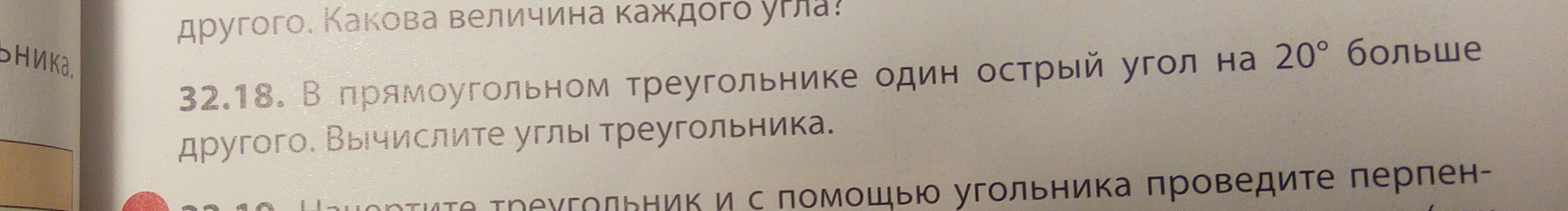 Меньший угол обозначим за х, тогда больший острый угол равен х+20.