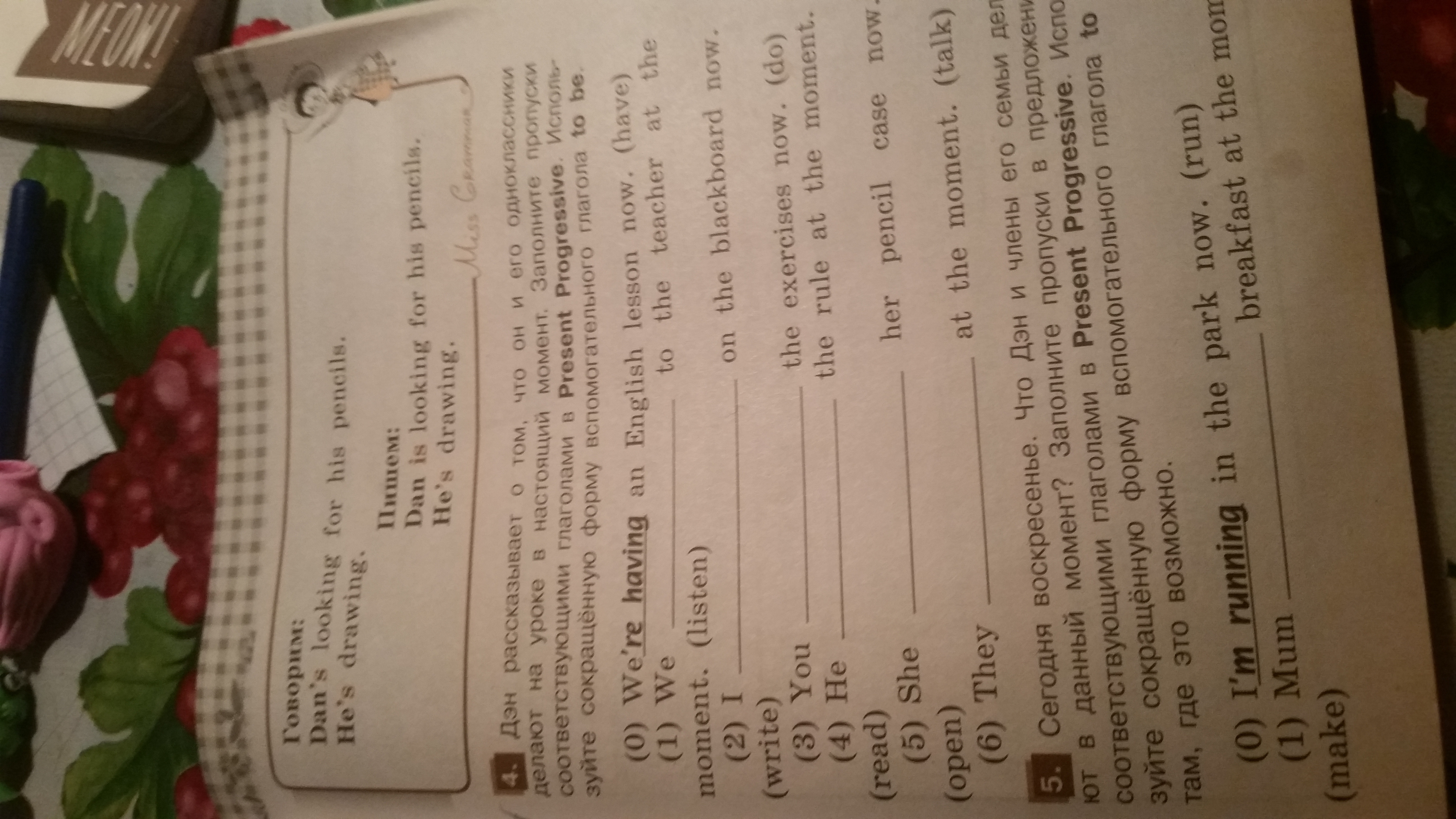 4) He's reading