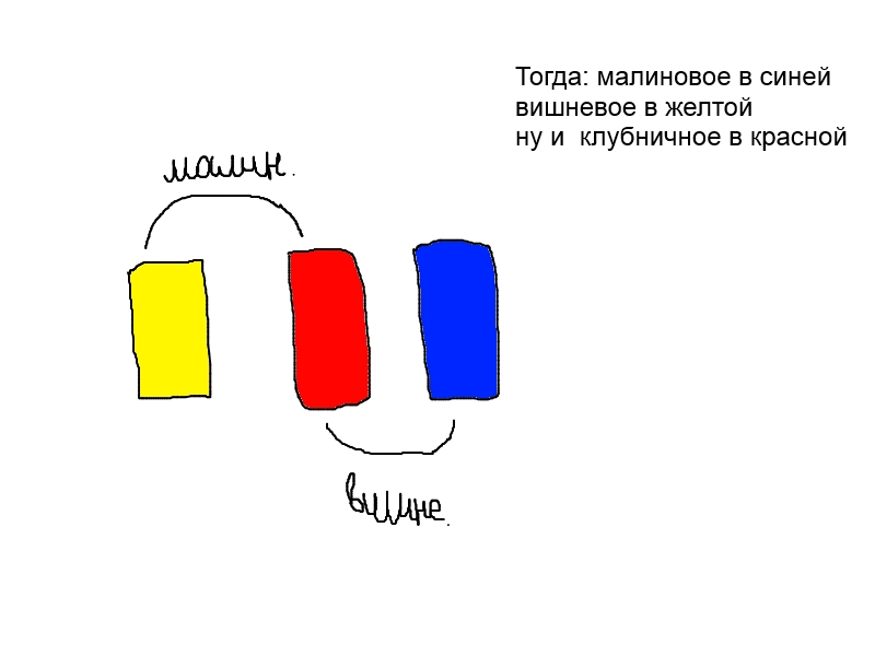 В трех банках с желтой, красной и синей наклейками лежит вишневое, клубничное и малиновое варенье. Карлсон скаазал Малышу, что малиновое варенье лежит в банке с кр