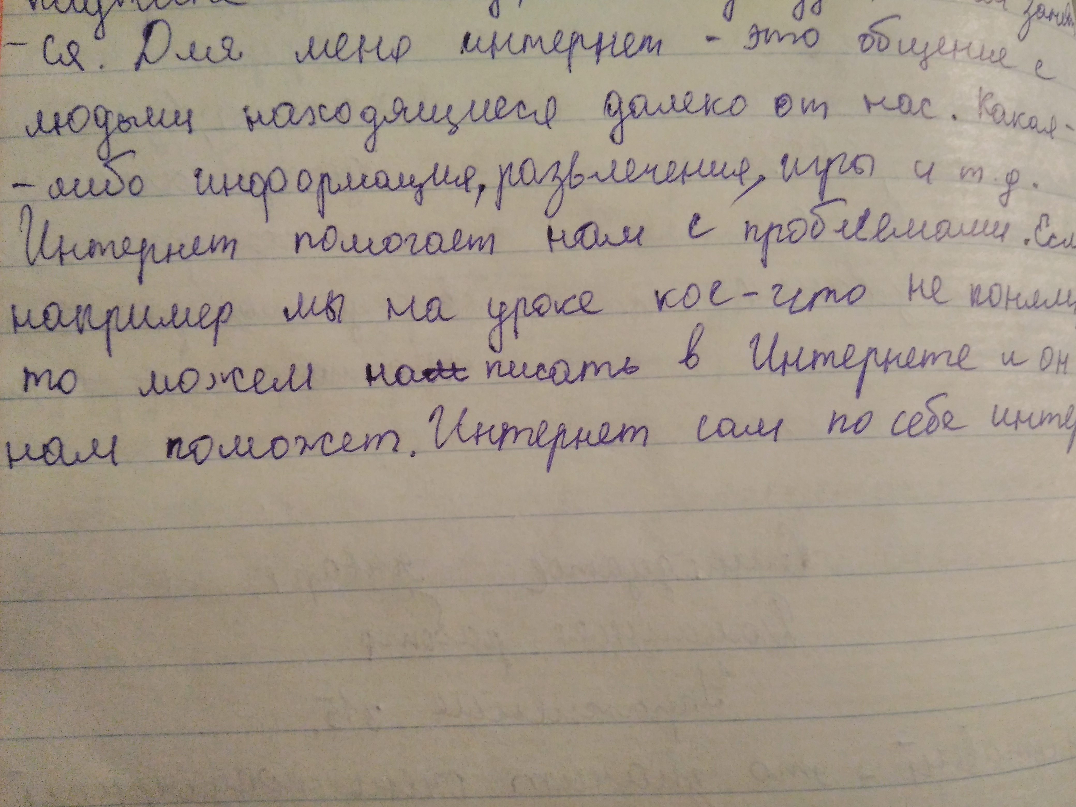 Для меня интернет -это общения с людьми находящиеся далеко от нас.Какая либо информация . Развлечения игры , и т.д . фильмы . Интернет помогает нам с проблемами если например мы на уроке кое что не поняли то можем написать в интернете и он нам поможет. Интернет сам по себе интересный