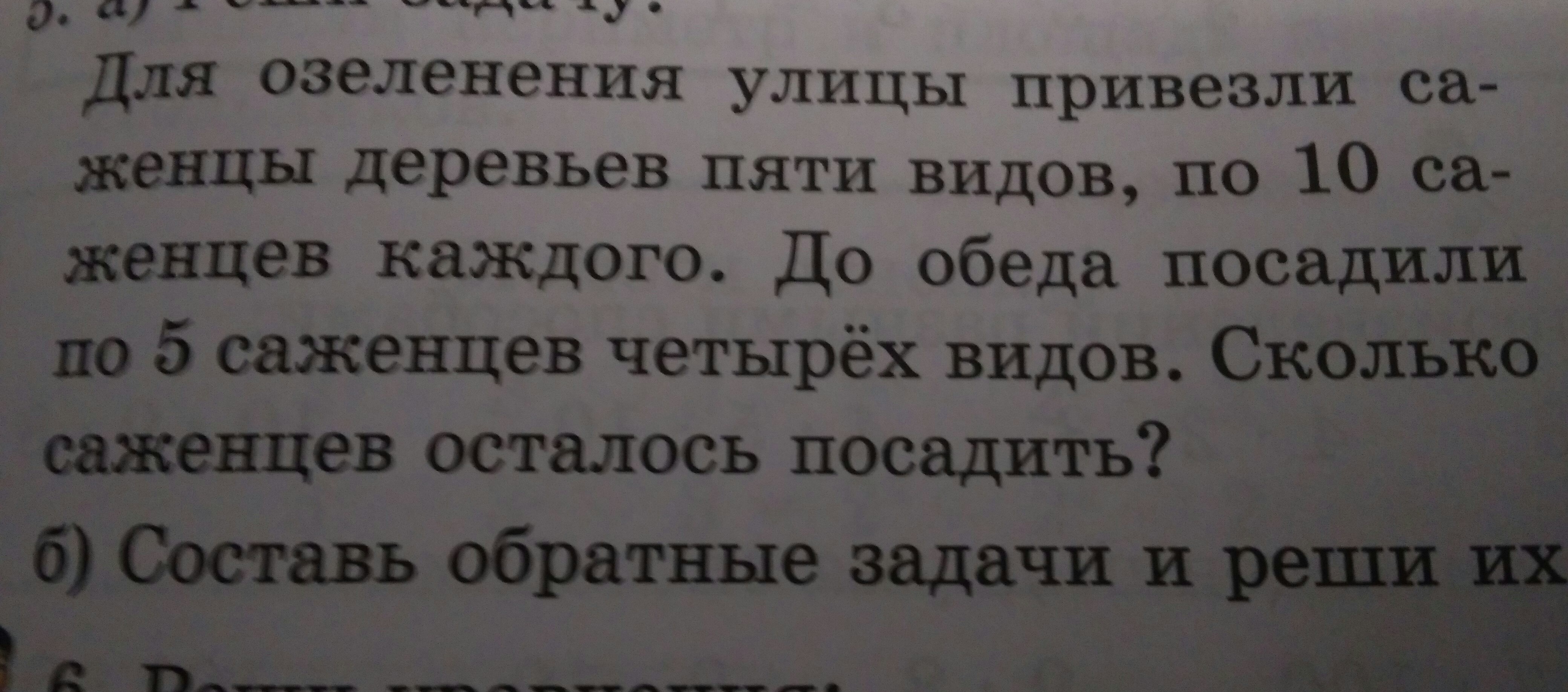 До обеда посадили 20 саженцев. После обеда осталось посадить по 6 саженцев 5-и видов. Сколько всего деревьев посадят?