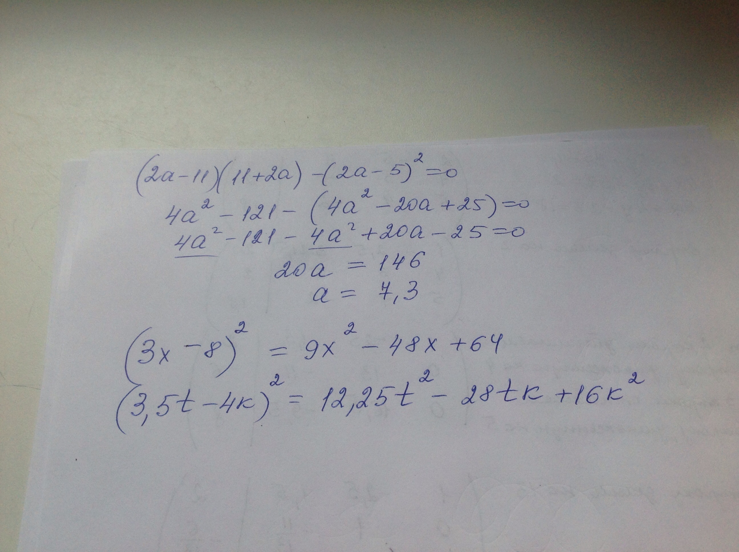 Решите уравнение ( 2а-11)(11+2а)-(2а-5)^2=0