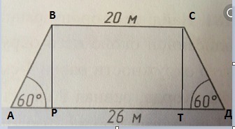 Опустим высоту ВР. В ΔАВР ∠АВР=90-60=30°, тогда АВ=2АР=6м (катет в прямоугольном Δ против угла в 30° равен половине гипотенузы)