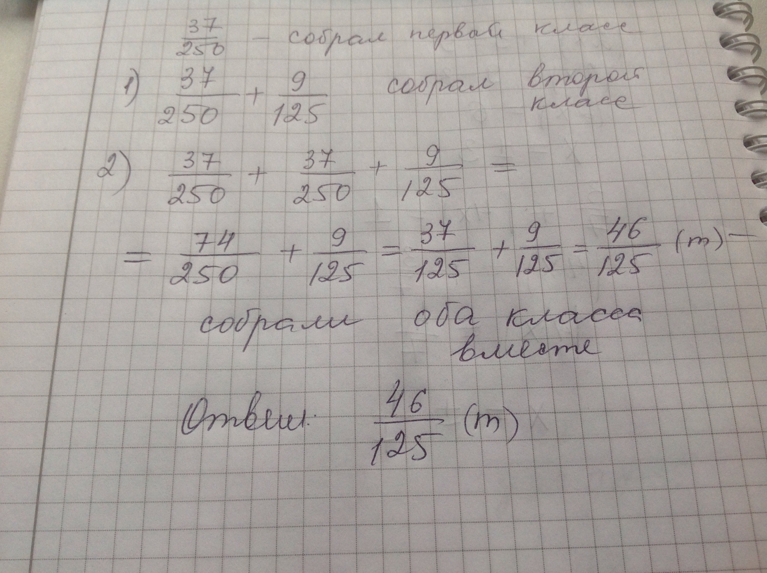 один класс собрал 37/250 т макулатуры а другой на 9/125 т больше сколько тонн макулатуры собрали обо класса вместе