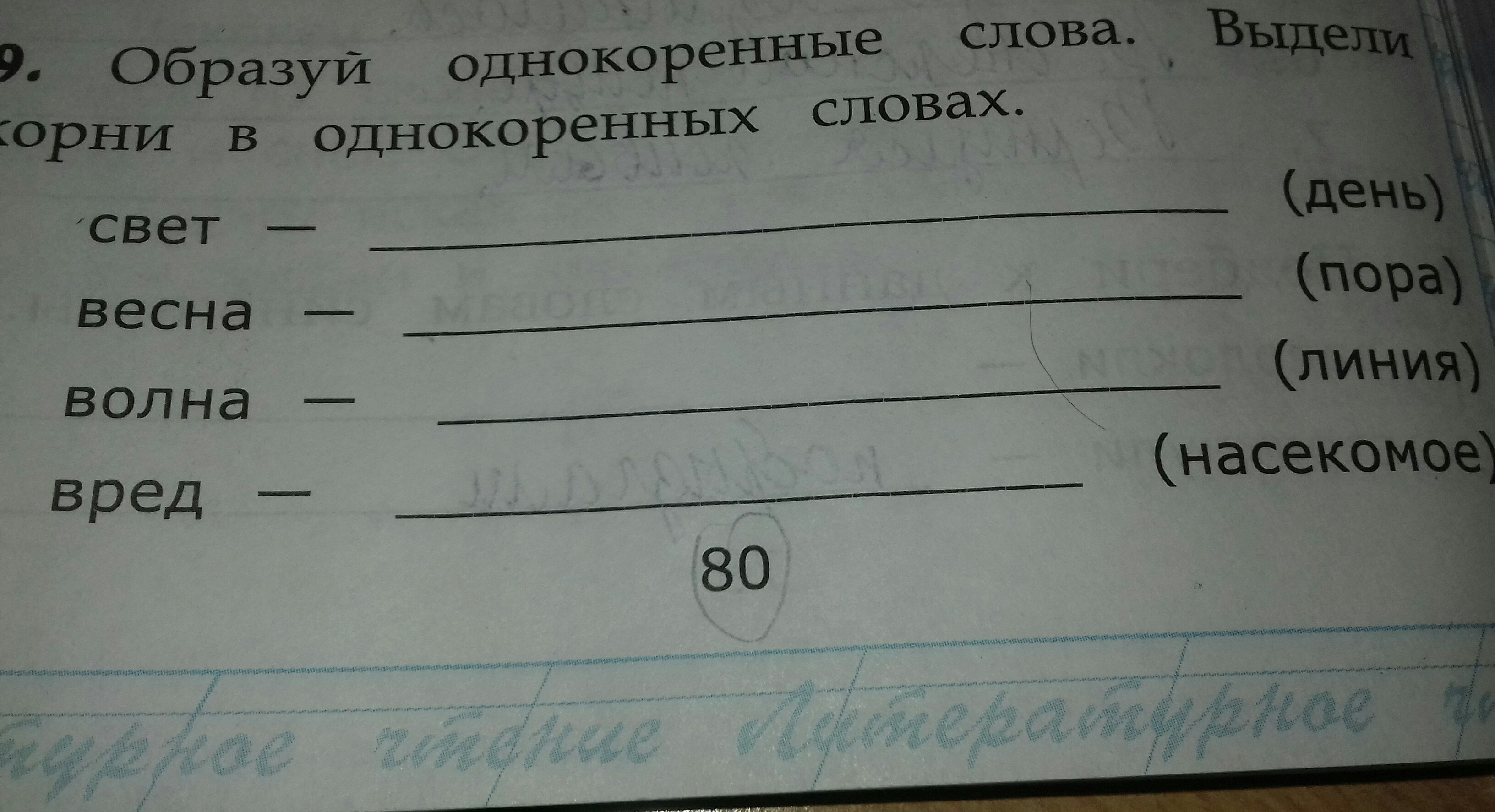 образуй однокоренные слова Выдели корни в однокоренных словах свет день весна пора волна линия насекомые