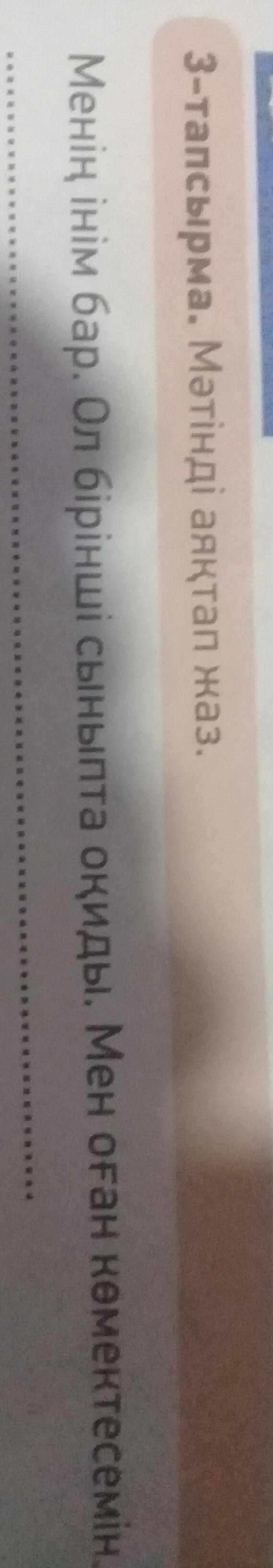Ол маган сабақ туралы сурак береді,мен оган жауап беремін.Кейде ол менден үй жұмысынан комек сұрайды.Менін інім сыныпта ең ақылды себебі көп кітап оқиды