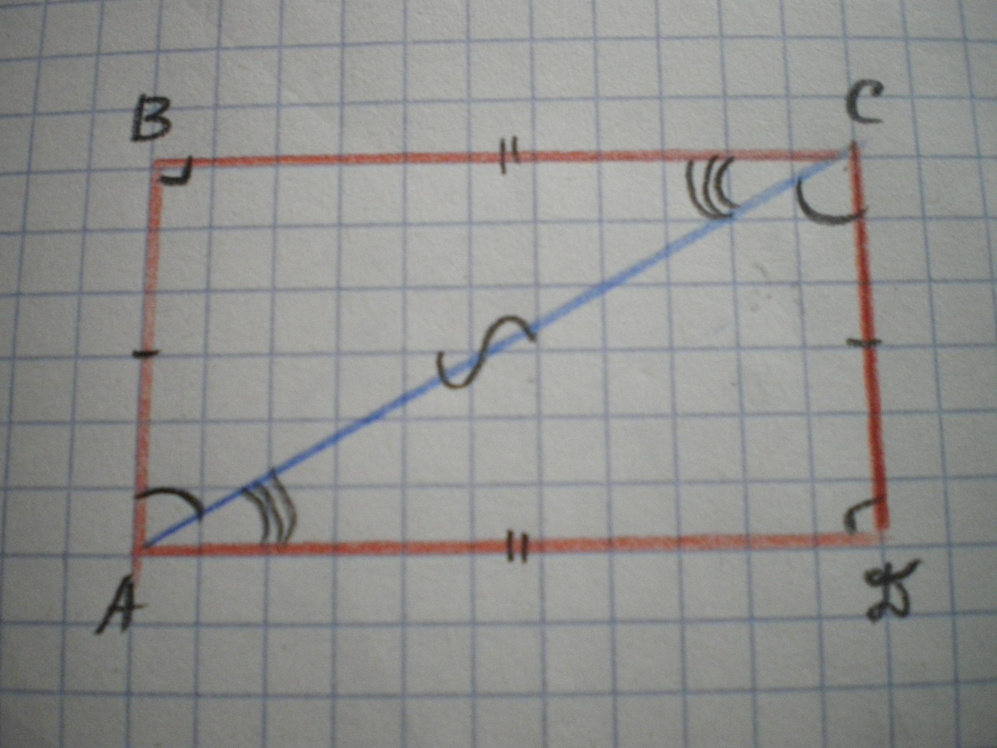 Дано: ABCD - прямоугольник, АС - диагональ, ΔАВС=ΔАСD.