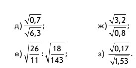 е) не знаю как делать, корень не выводиться з)√0,17/1,53=√1/9=1/3