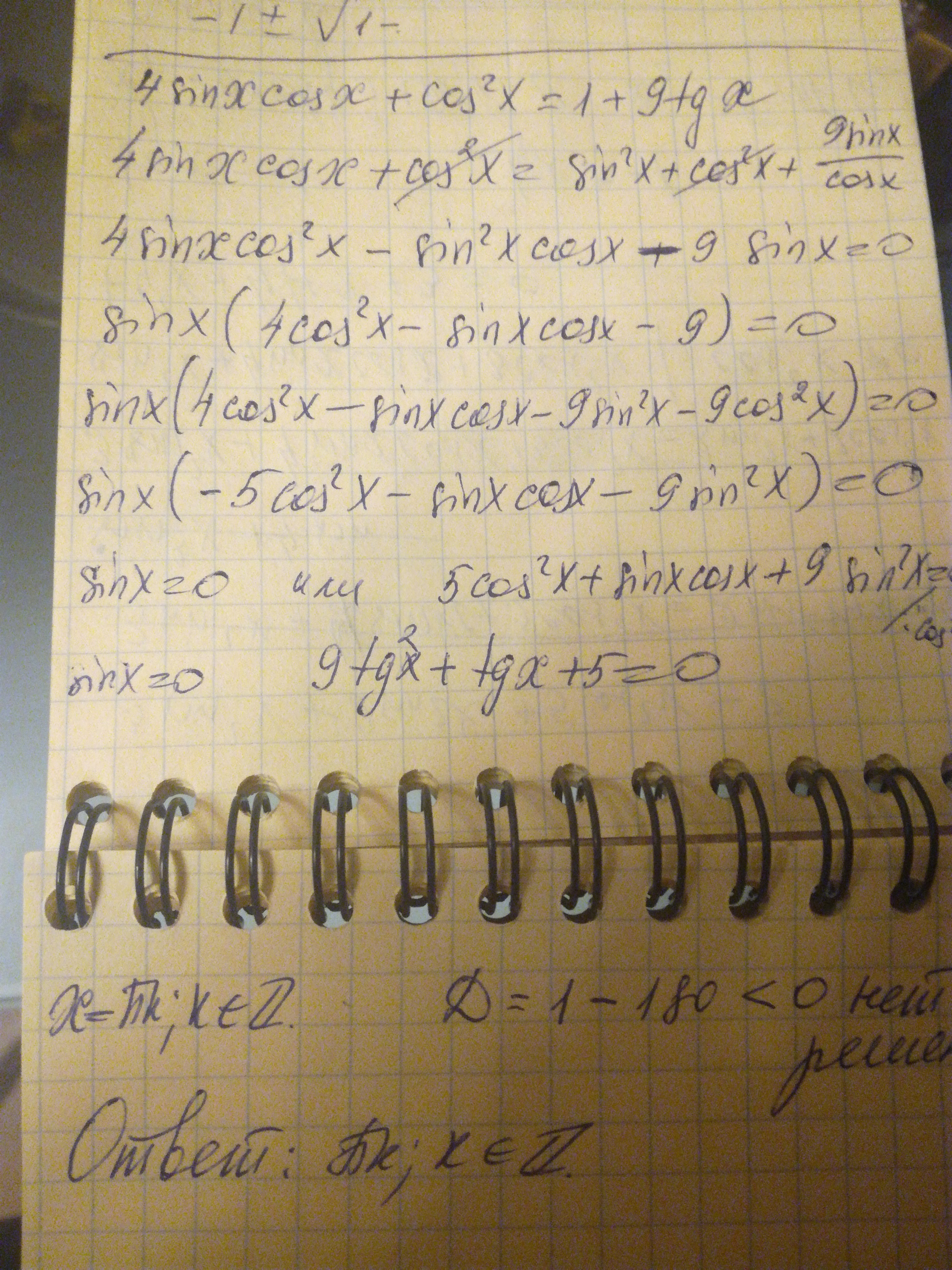 А откуда в скобках появилась 9sin^2x - 9cos^2 x?