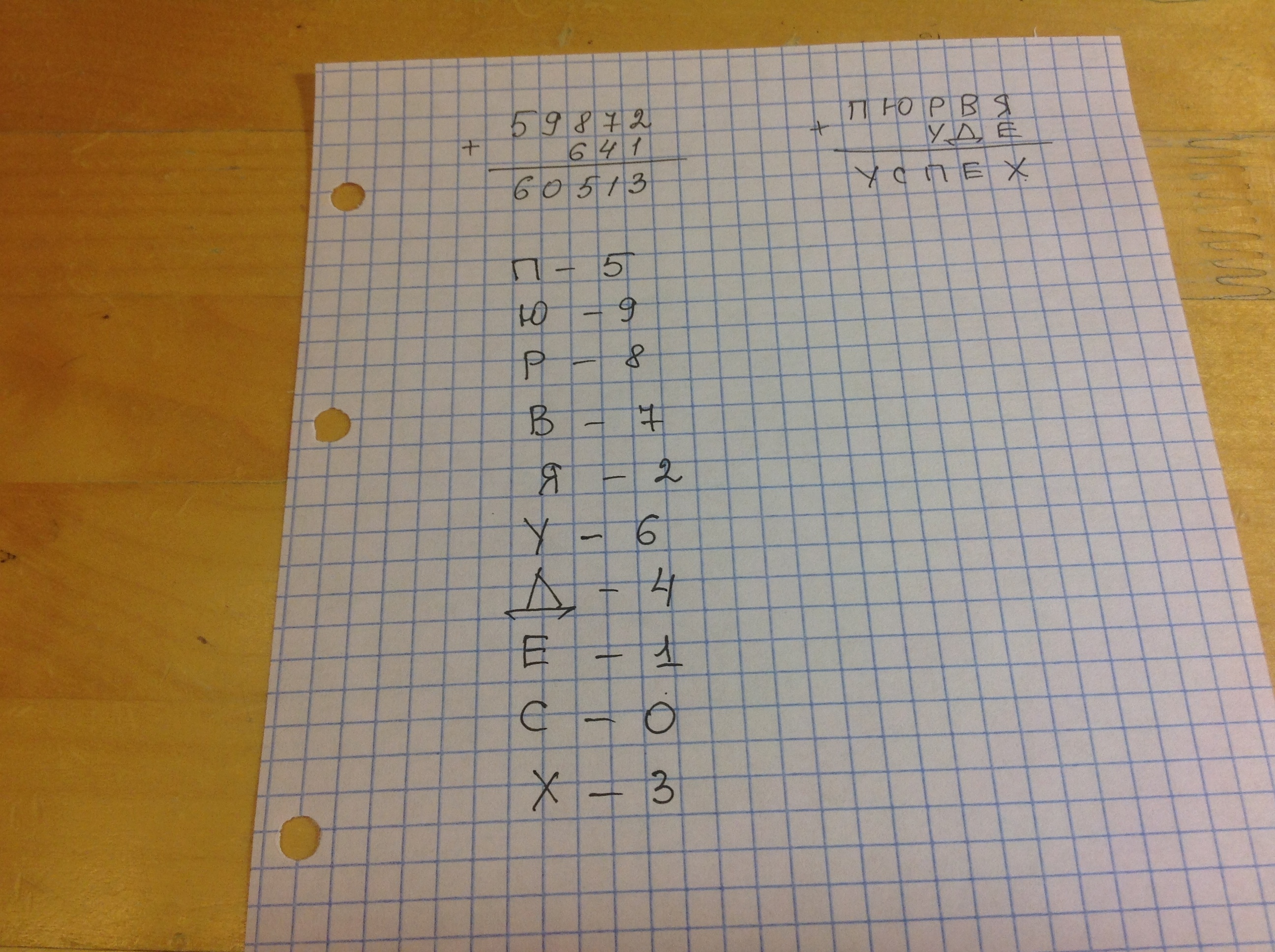Расшифруйте ребус: пюрвя + уде= успех.Одинаковым буквам соответствуют одинаковые цифры, разным- разные