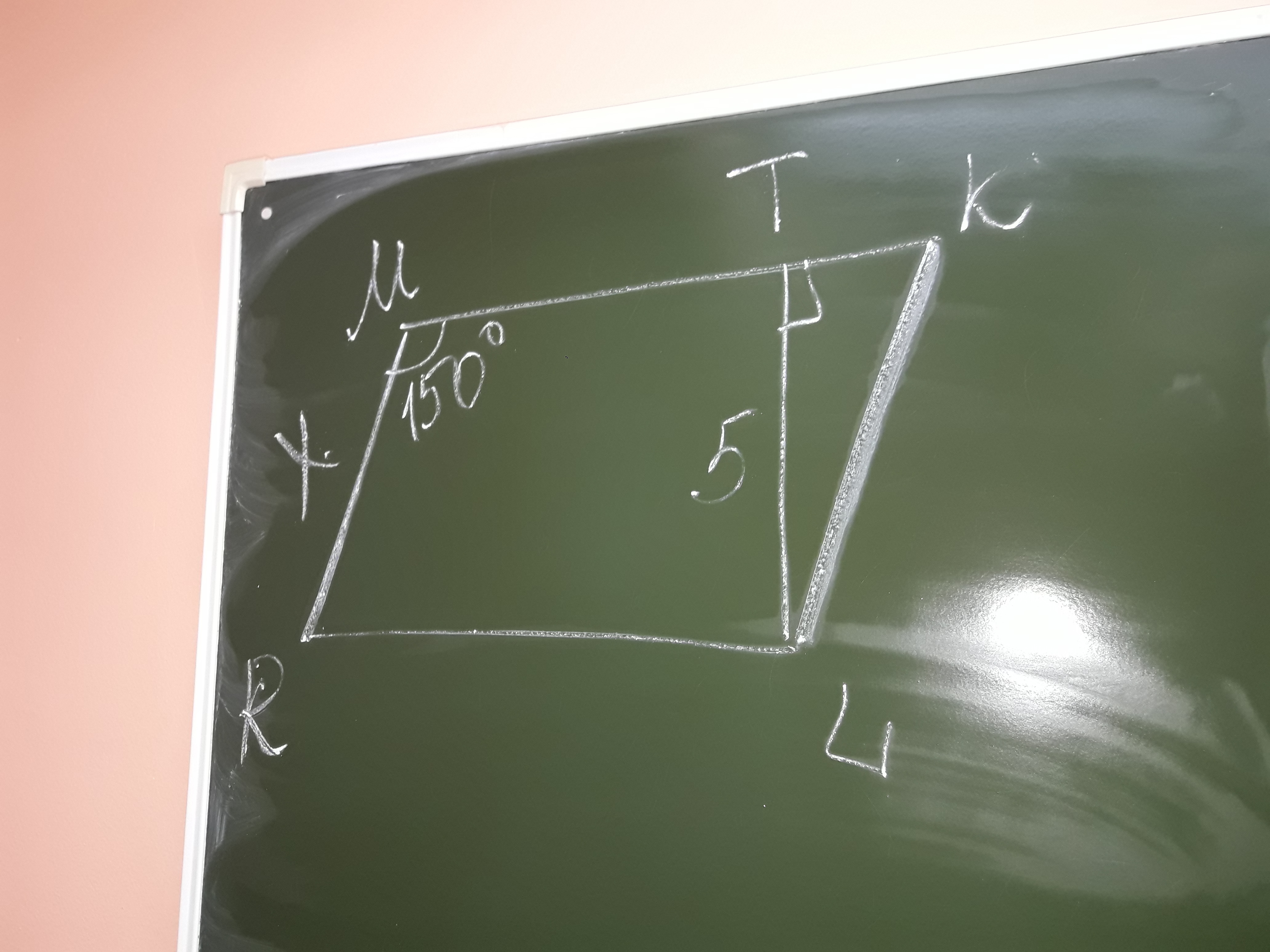 угол MRL равен 30 градусам: 180-150=30 т.к. угол RMK =150, а вместе они всегда 180. из этого делаем вывод, что угол MKL тоже равен 30 градусам.