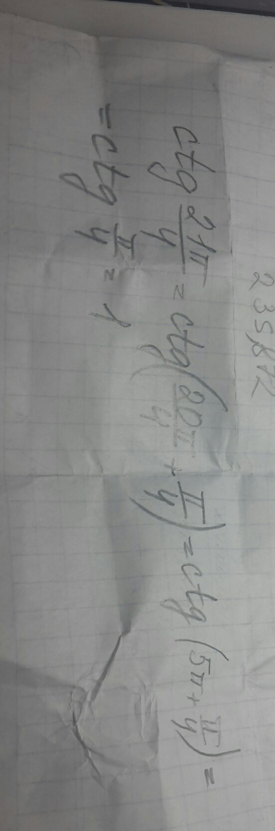 расскладываем 21pi/4 на сумму так,чтобы можно было выделить целое число и отбросить целый оборот, 5pi отбрасываем м вычисляем ctg pi/4 или ctg45