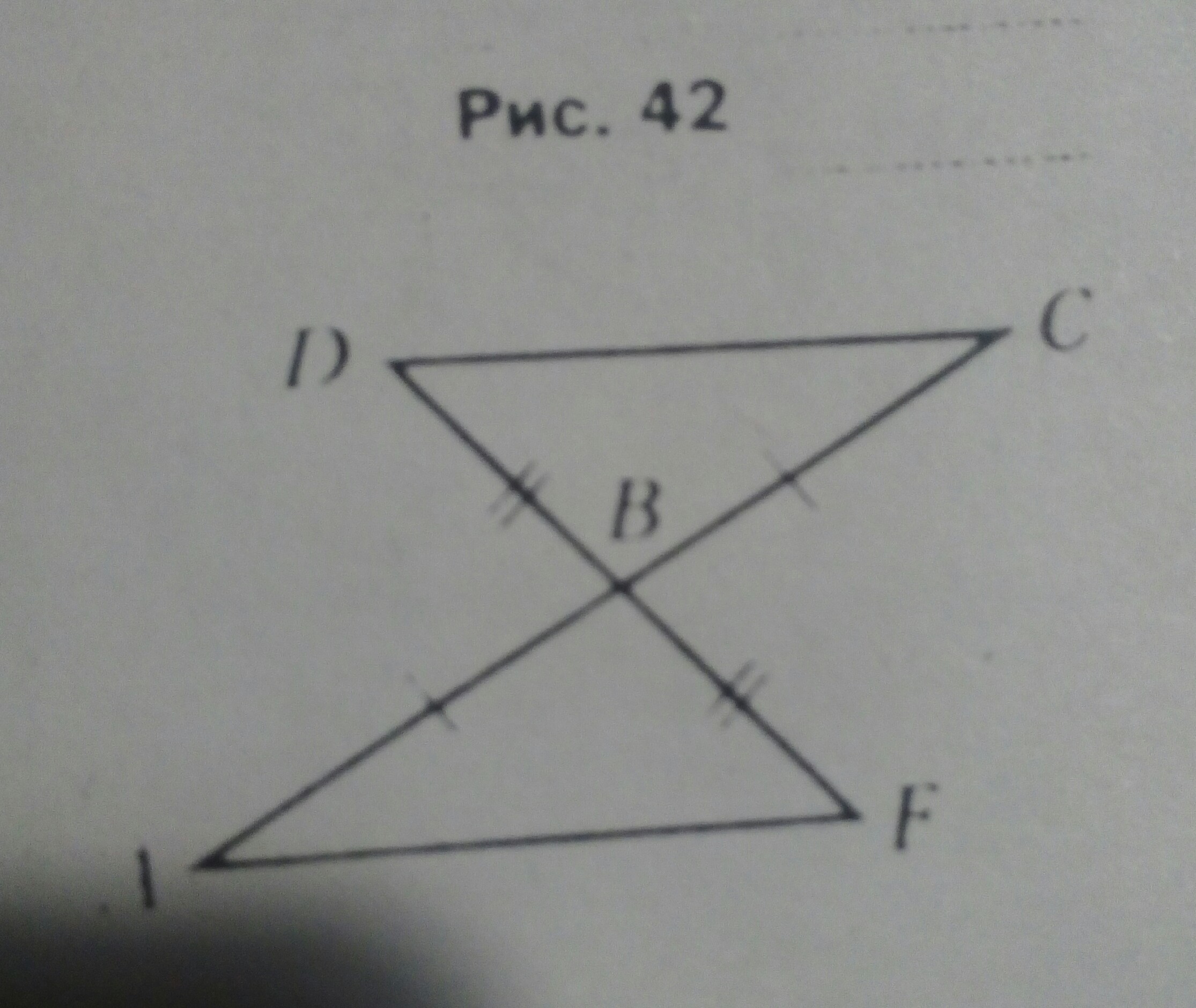 1.Докажите равенство треугольников ABF и CBD (рис. 42), если AB = BC, BF = BD