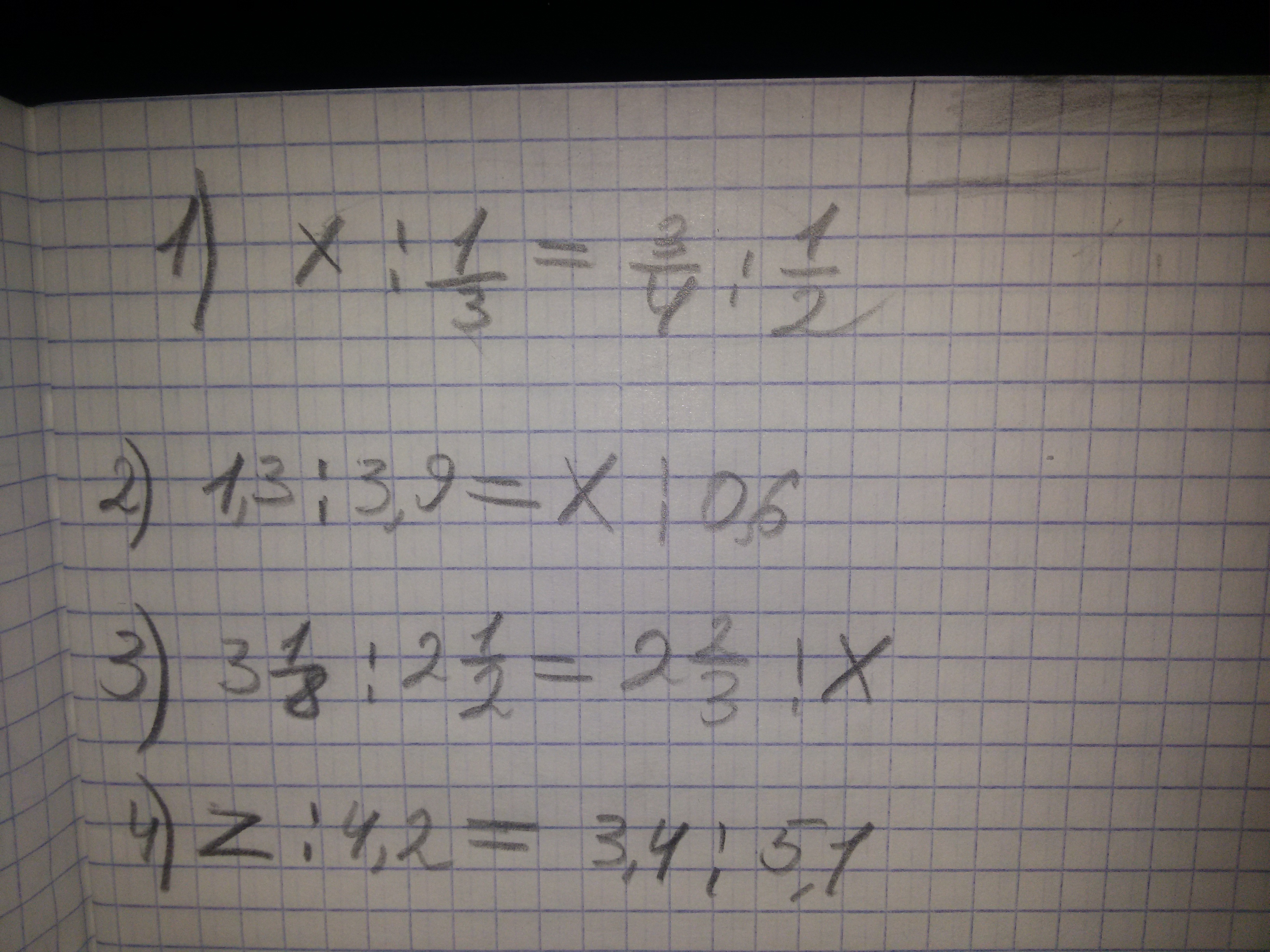 1) х:1/3=3/4:1/2