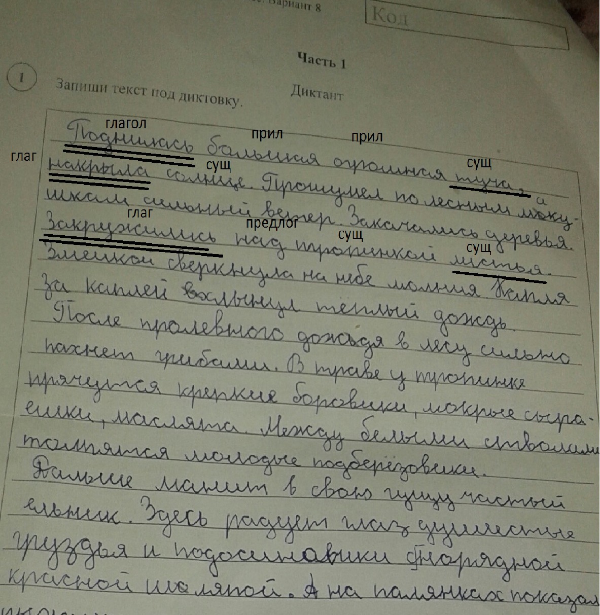 Выпиши из текста два предложения подчеркни в нём главные члены над каждым словом напиши Какой частью речи оно является