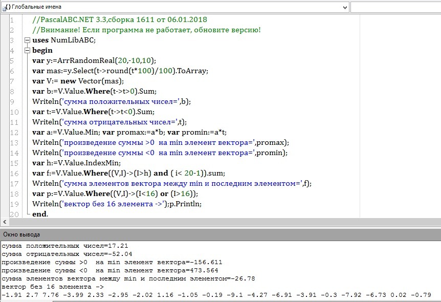 Writeln('произведение суммы <0 на min элемент вектора=',promin);
