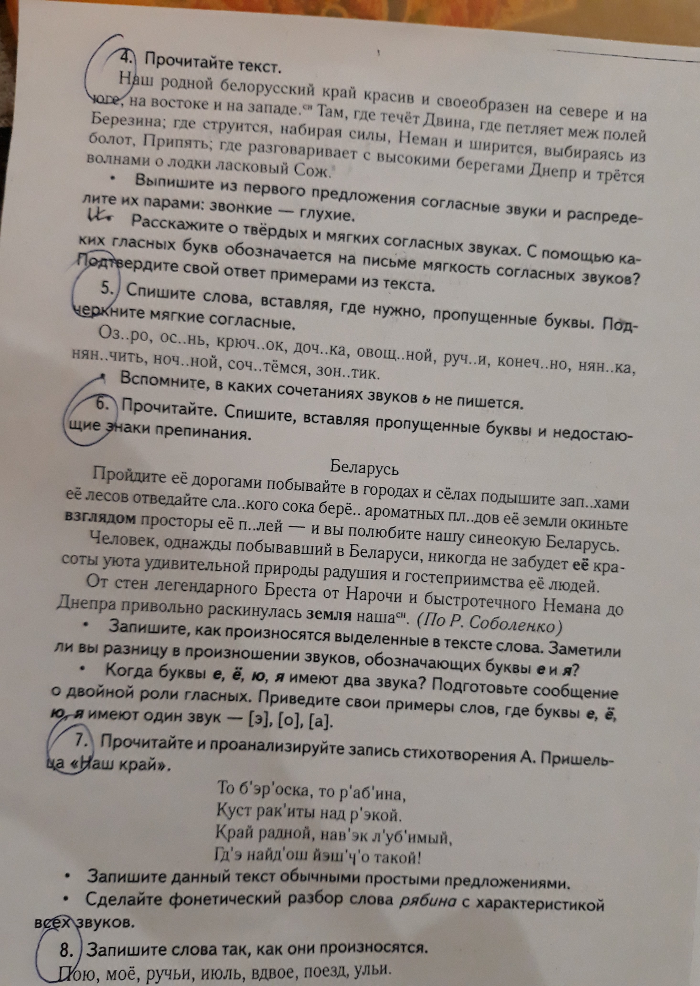 6)Пройдите ее дорогами, побывайте в городах и селах, подышите запахами ее лесов, отведайте сладкого сока берез, ароматных плодов ее земли, окиньте взглядом просторы ее полей - и вы полюбите нашу синеокую Беларусь.