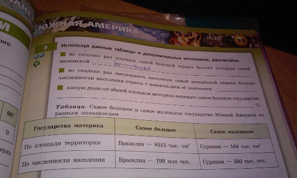 1.) Во сколько раз площадь самой большой страны больше площади самой маленькой( Самая большая- Бразилия, а самая маленькая- Суринам)