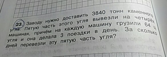 хотя нет, я не посмотрела. там центнеры, поэтому 1)38400:5=7680 2)7860:64=120 3)120:3=40дней. Вот.