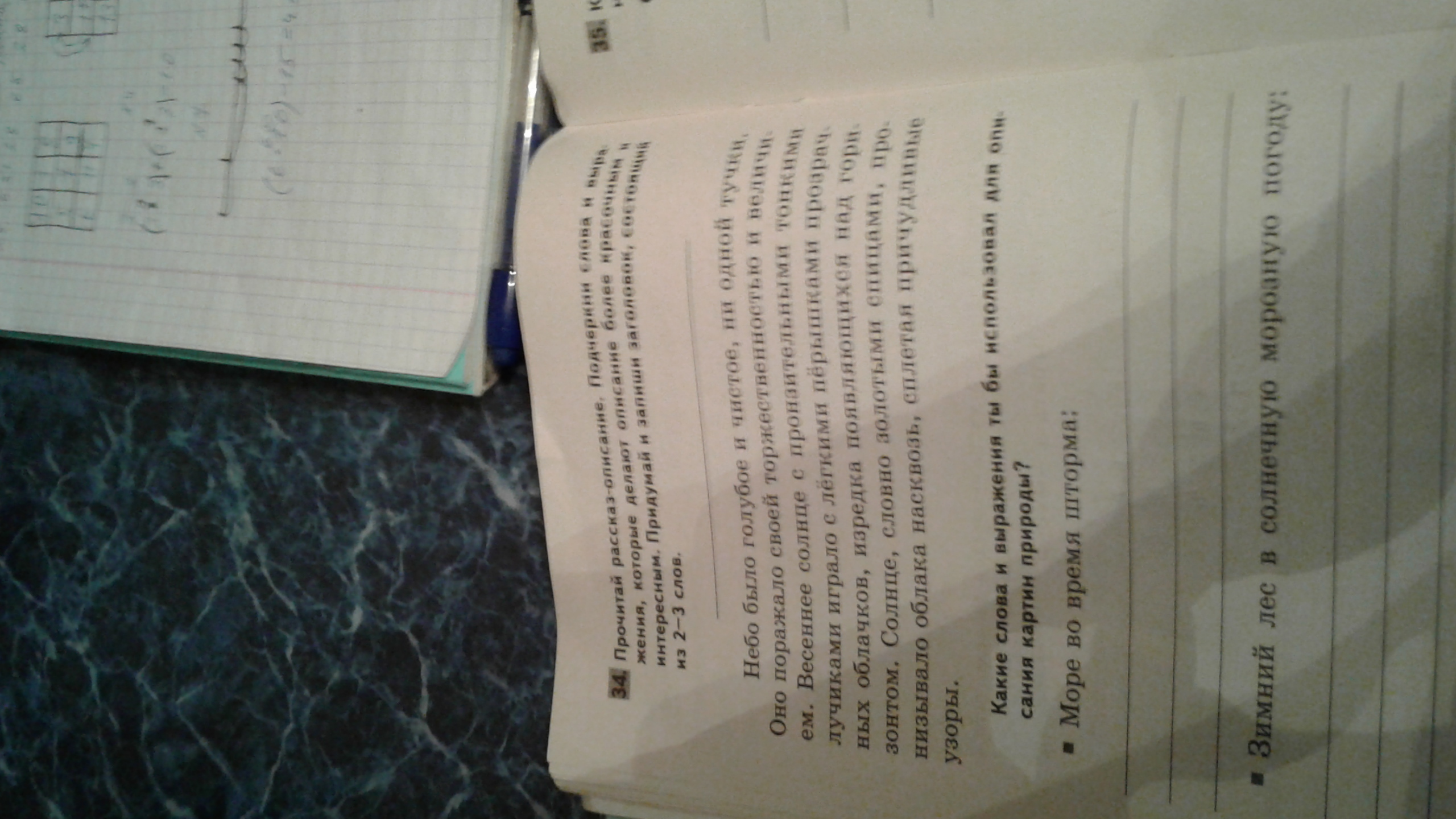 Небо было /голубое и чистое/, ни одной тучки. Оно поражало своей /торжественностью и величавостью/. Весеннее солнце с /пронзительными тонкими / лучами играло с /лёгкими пёрышками/ /прозрачных облаков/, изредка появляющихся над горизонтом. Солнце, словно / золотыми спицами/, пронизывало облака насквозь, сплетая / причудливые/ узоры.