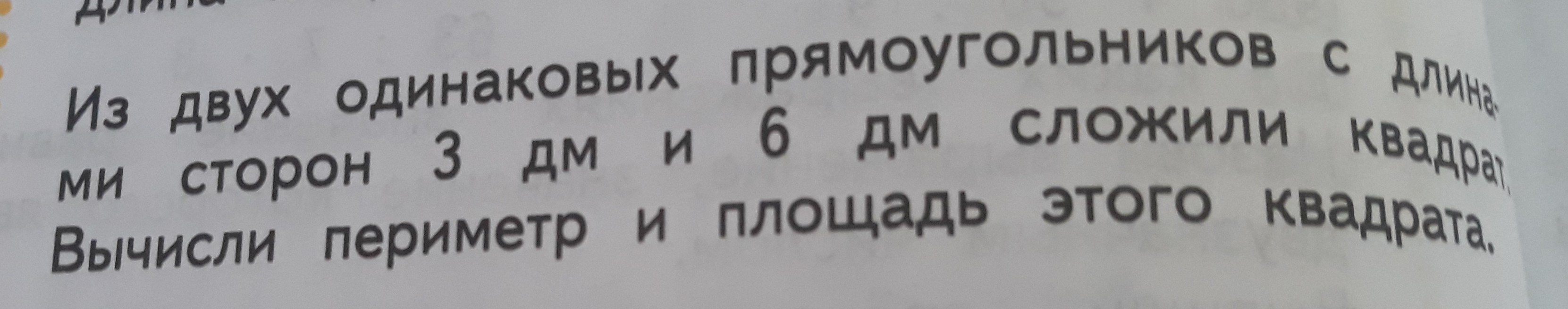 положите прямоуголники друг на друга стороной 6 см и получисите квадрат сторой 6 см