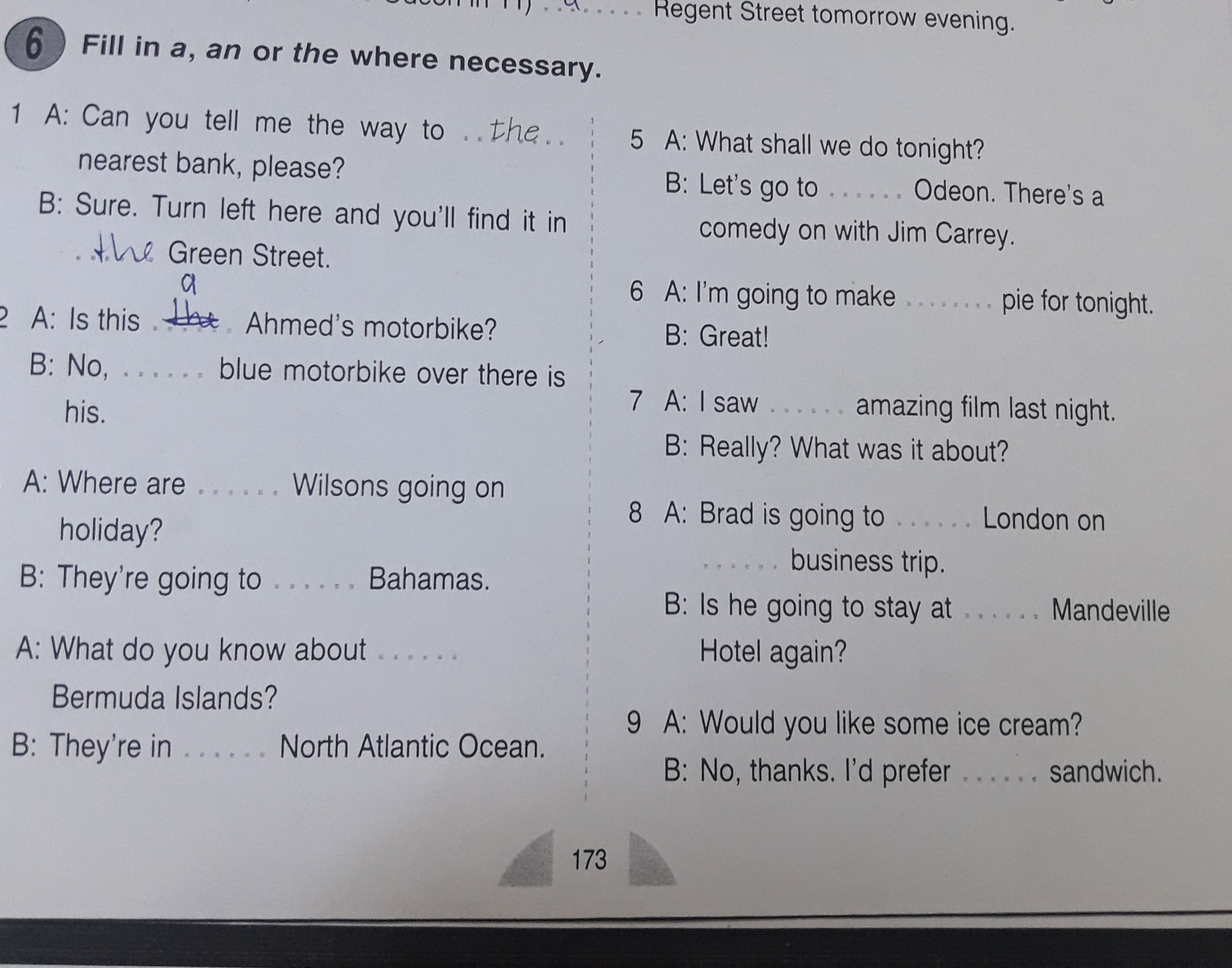 1 the … --- 2 ---…the 3 the…the 4 the … the 5 the 6 a 7 an 8 ---…a … the 9 a