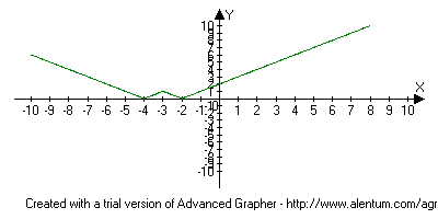 3) построим y=|x+3| : ту часть графика у=х+3, что находится ниже оси Ох, отразим отностительно Ох вверх. Получится галочка носом вниз