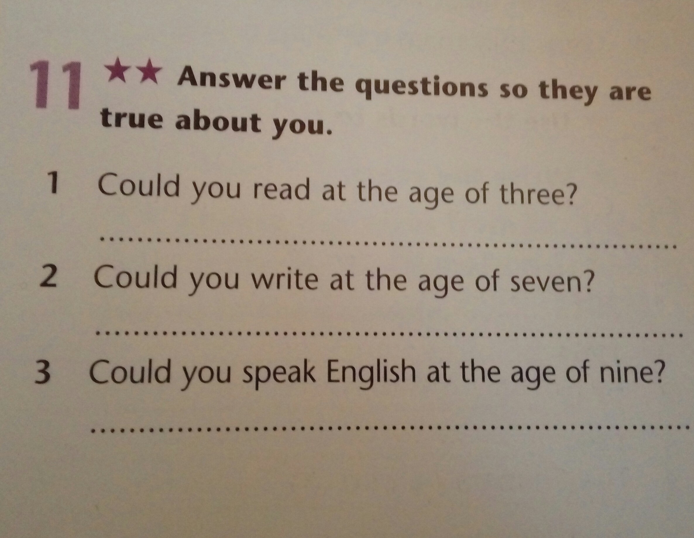 1) ты умел читать в 3? если да: Yes, i could, нет: No, i could not