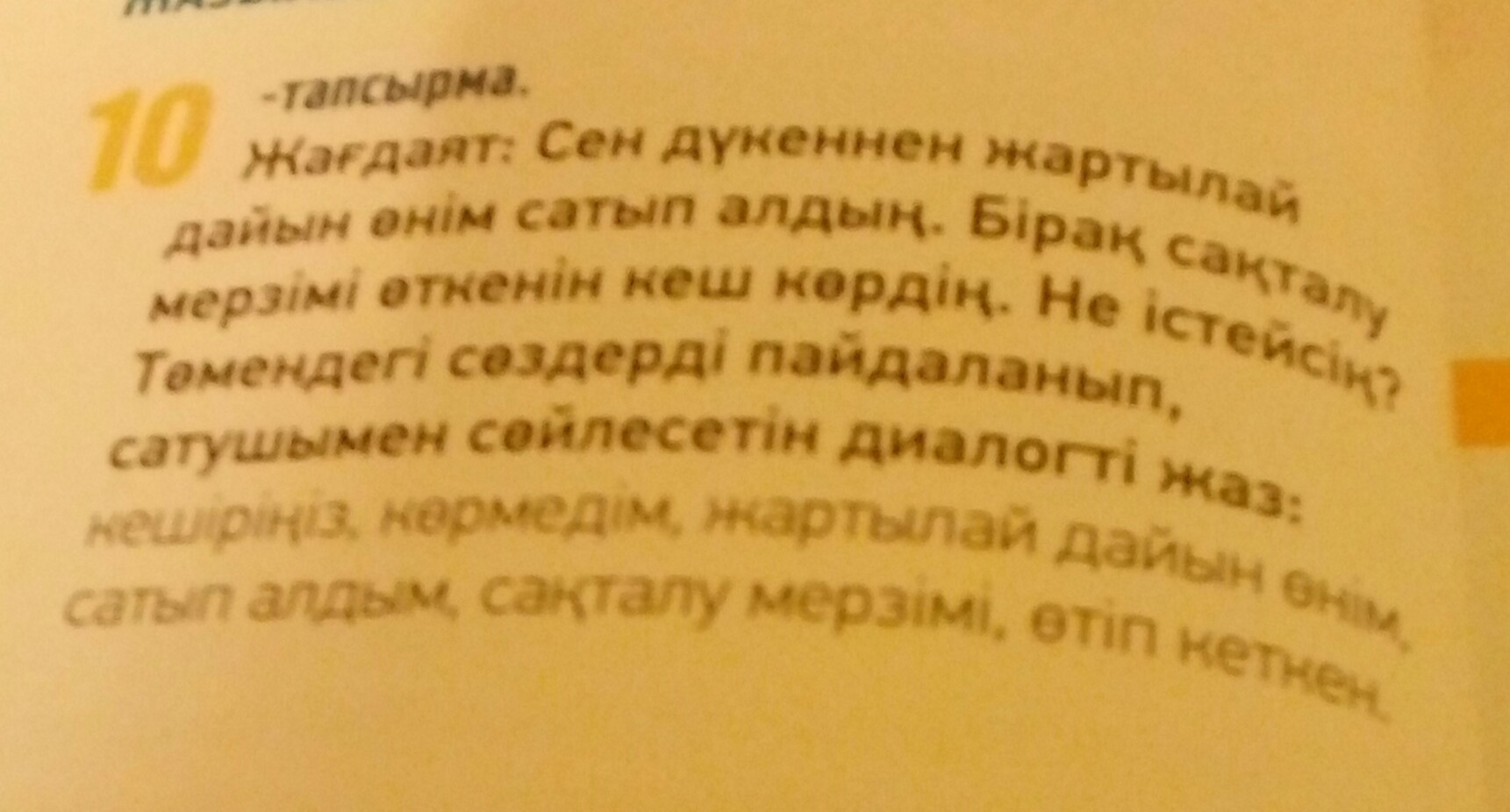 -Кешіріңіз, апай мен мына затты жана біразда алып едім сіздің дүкеніңізден. Үйге барып қарап қалсам сақталу мерзімі өтіп кетіпті.