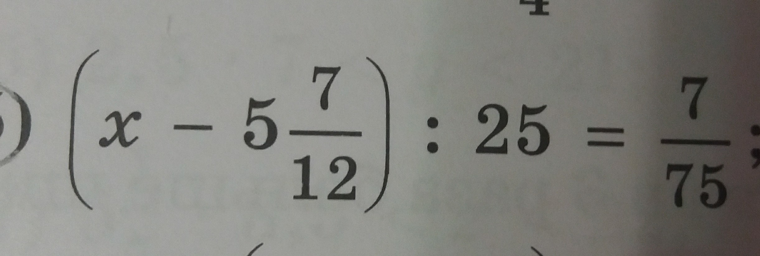 x - 5 7/12 = 7/75 * 25