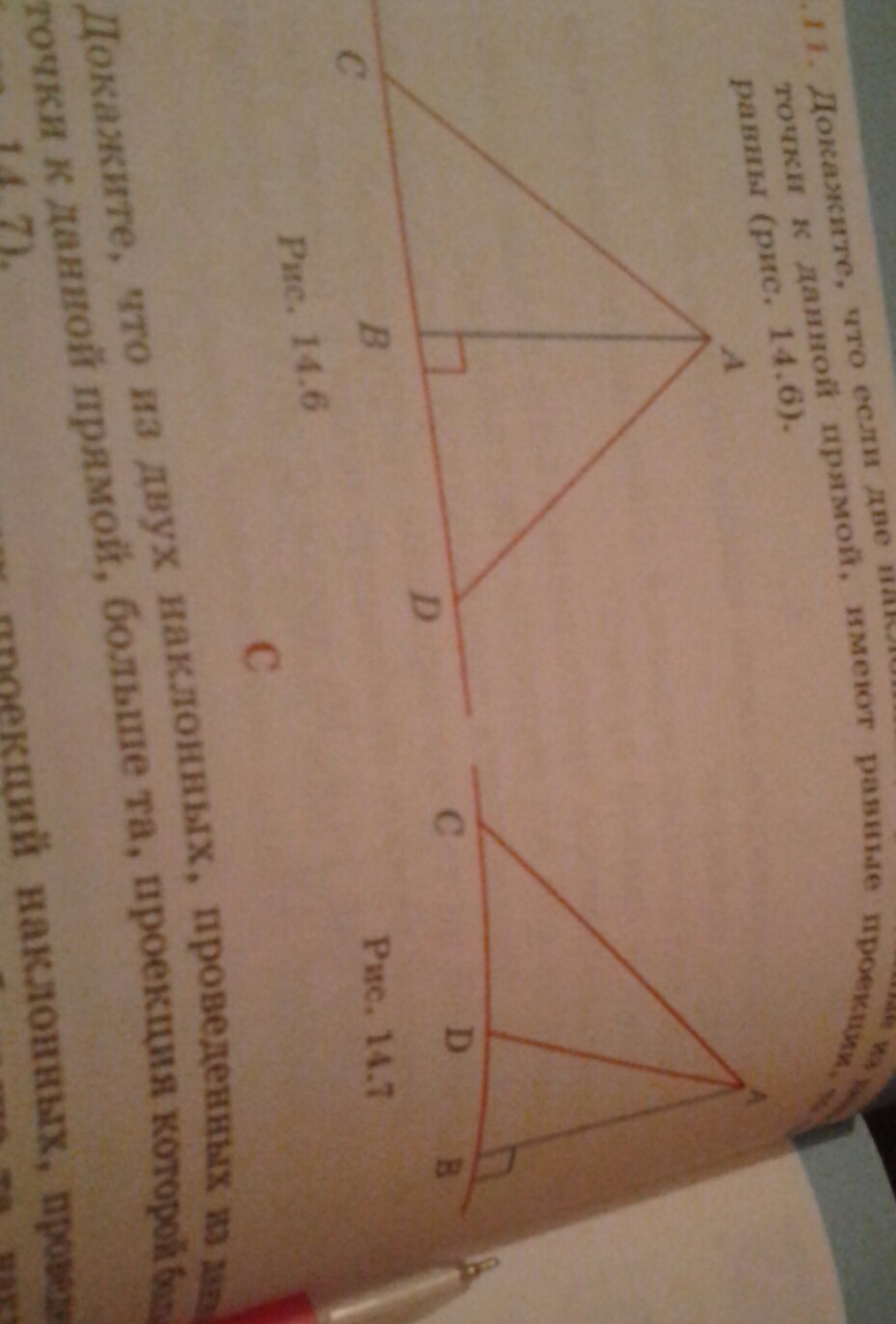 докажите что если две наклонные проведенные из данной точки к данной прямой имеют равные проекции то они равные даю 25 балов .