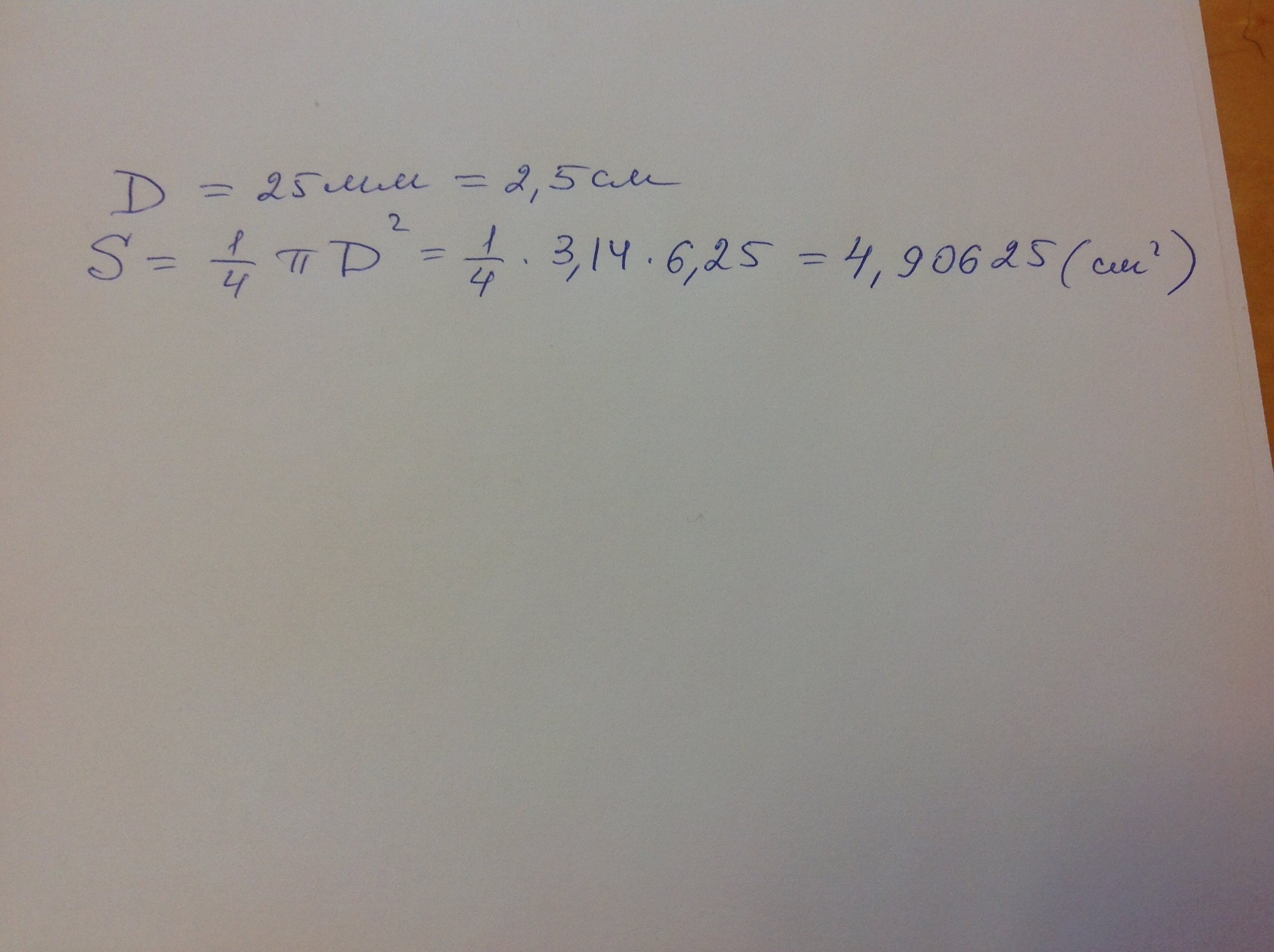 *D²=14 * 3,14 * 6,25=4.9062 см²