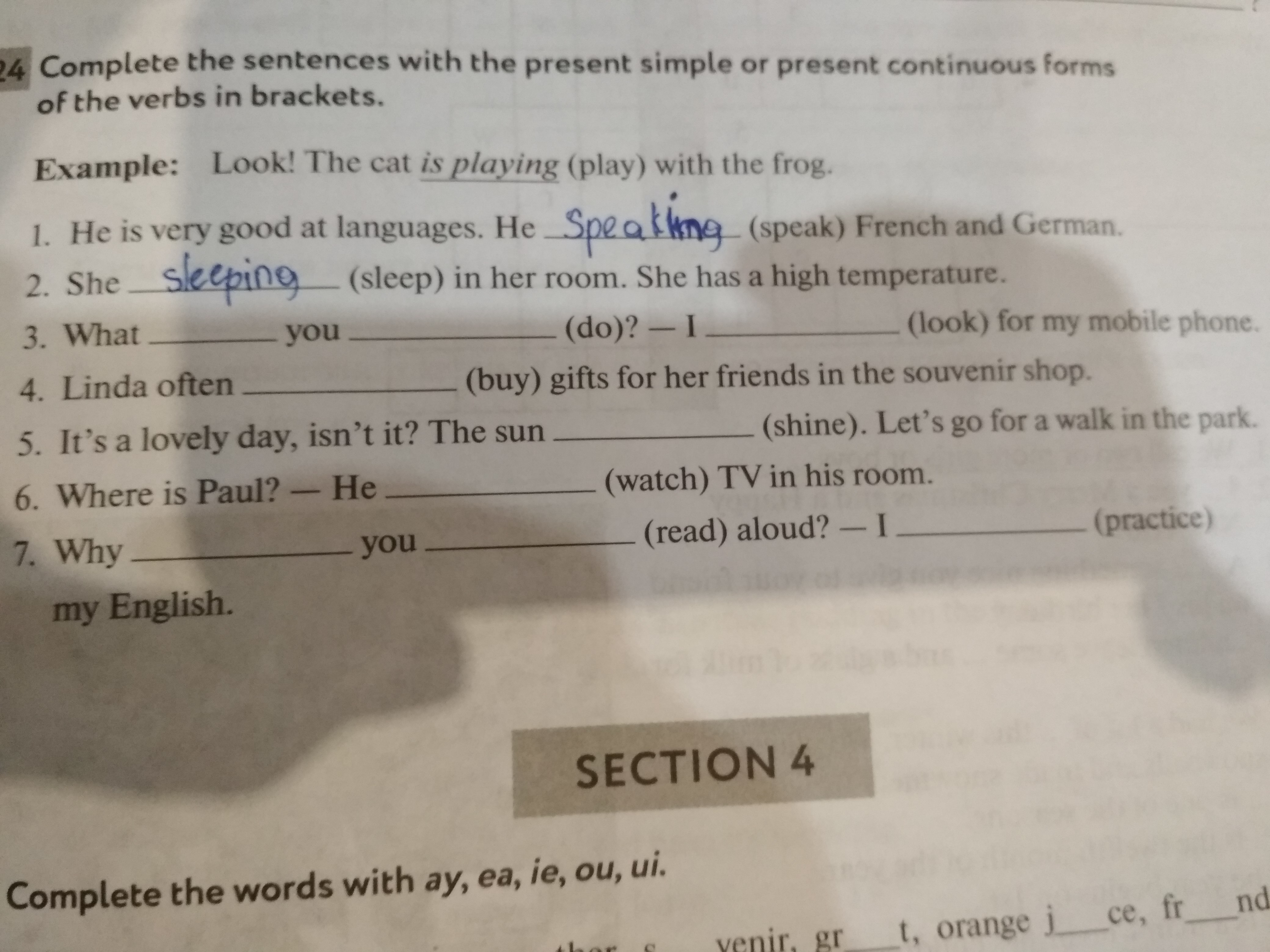 7. are, reading, am practising
