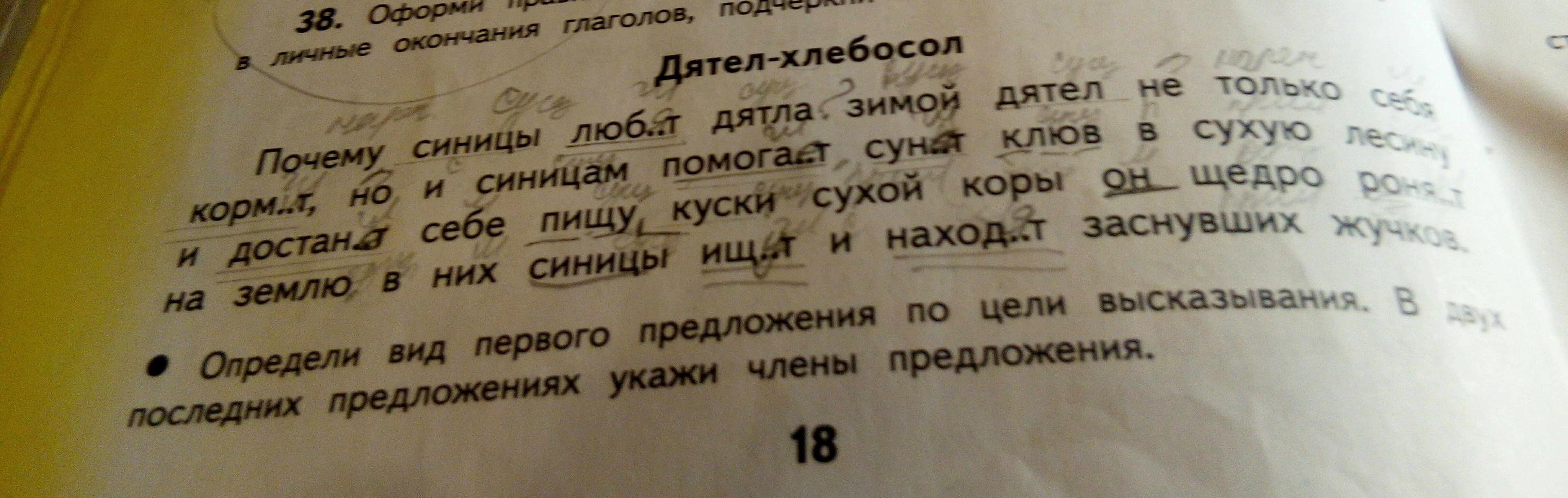 В них (дополнение) синицы (подлежащее) ищут и находят (сказуемые) заснувших (определение) жучков (дополнение).