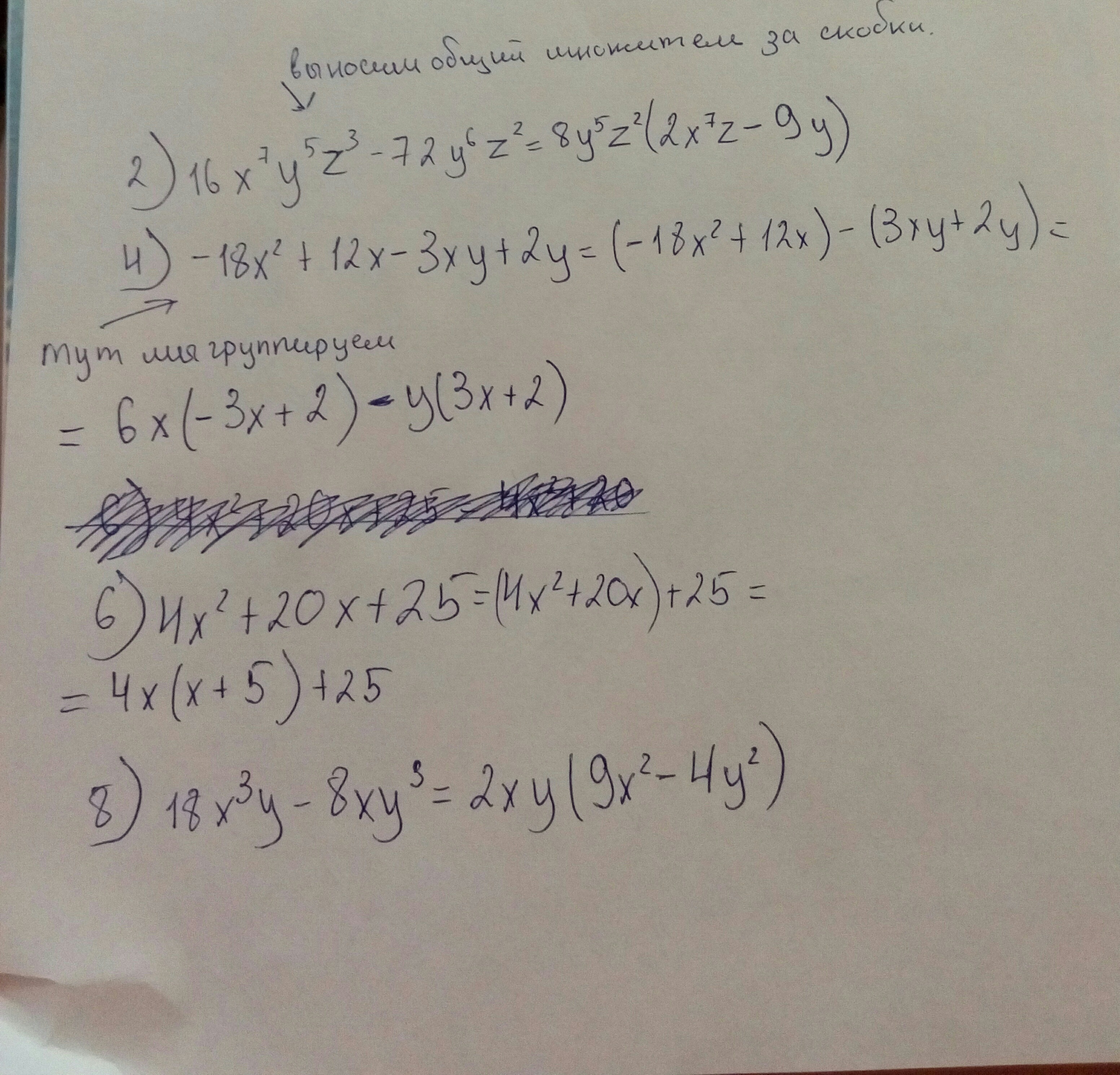 Выносим общий множитель за скобки. Единственное в чём я не очень уверенна, это в цифре 6, советую сравнить с ответами сами знаете где
