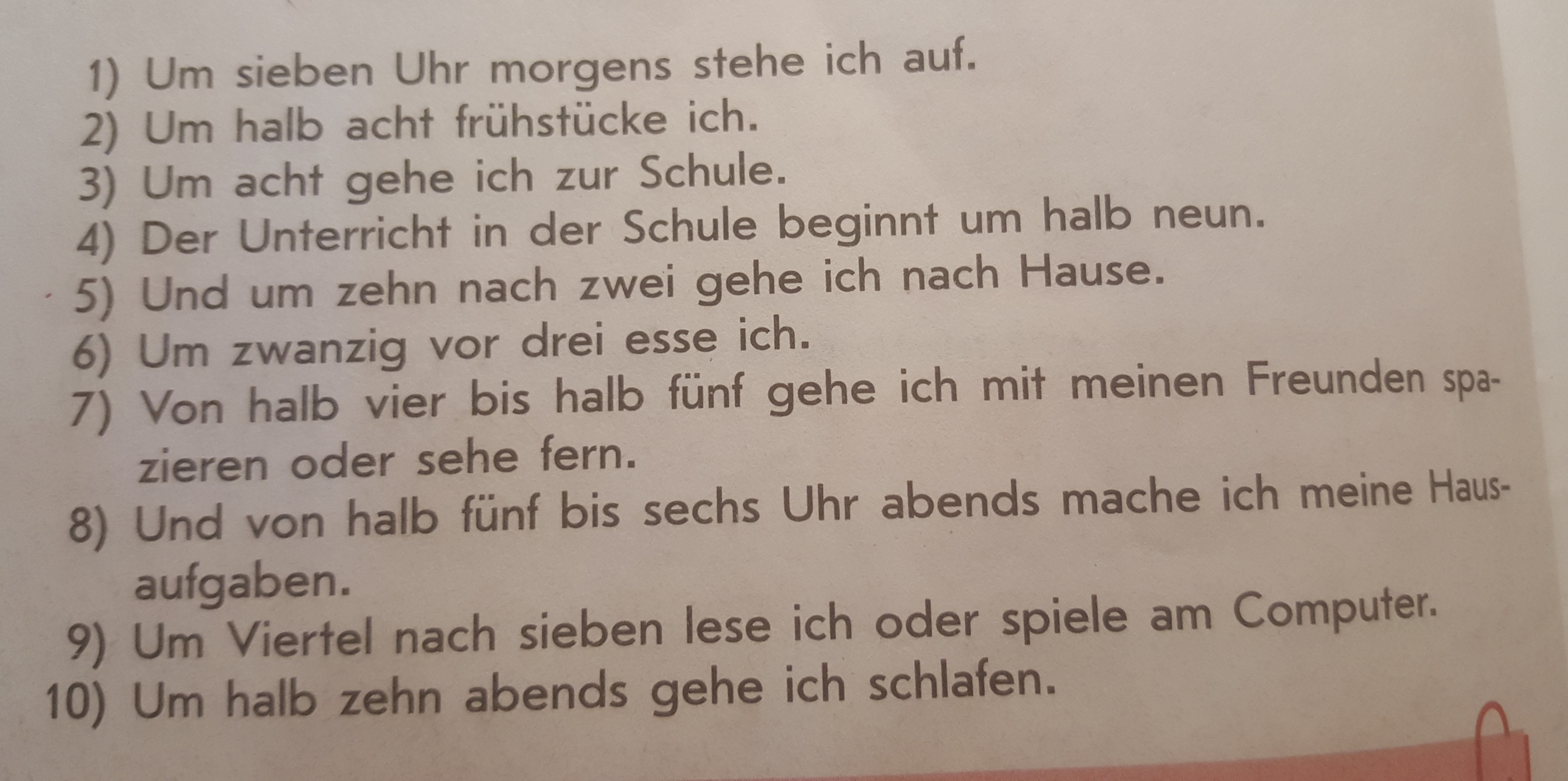 7. С половины четвертого до половины пятого я гуляю с другом или смотрю телевизор.