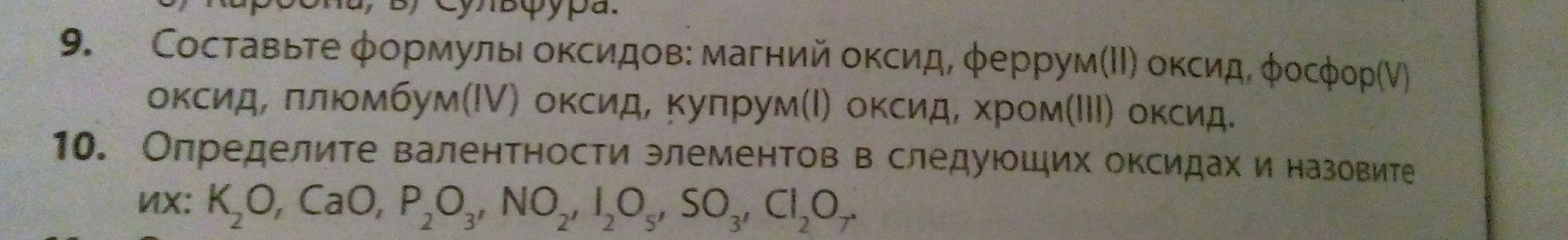 9. MgO, FeO, P2O5, PbO2, Cu2O, Cr2O3.