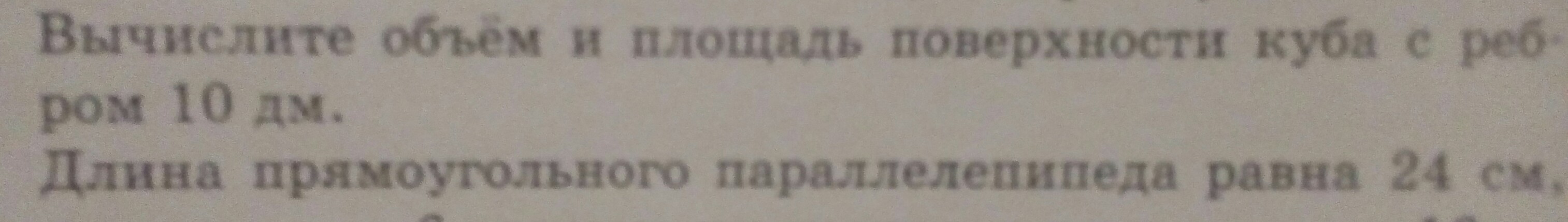 вычислите объём и площадь поверхности куба с ребром 10дм